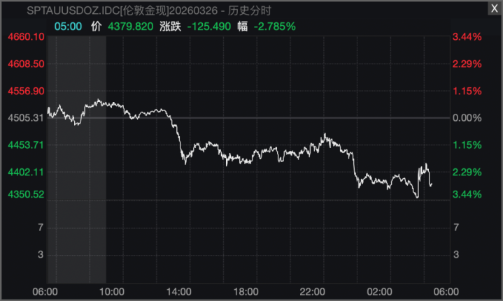 Wind数据露馅,遗弃3月26日收盘,现货黄金跌2.79%,报4379.68好意思元/盎司;COMEX黄金期货跌3.85%,报4376.90好意思元/盎司。