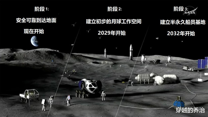 整个这个词基地具有新的核能和太阳能系统、载东说念主和无东说念主探伤车,用于基建的工程机械、月面类手机通讯网络、月球GPS系统,月球不雅测和通讯卫星中继网。月球名义基地竖立是NASA的优先任务,亦然改日火星盘算的教悔场。瞻望到2026年,NASA用于重返月球盘算的开销达1070亿好意思元。