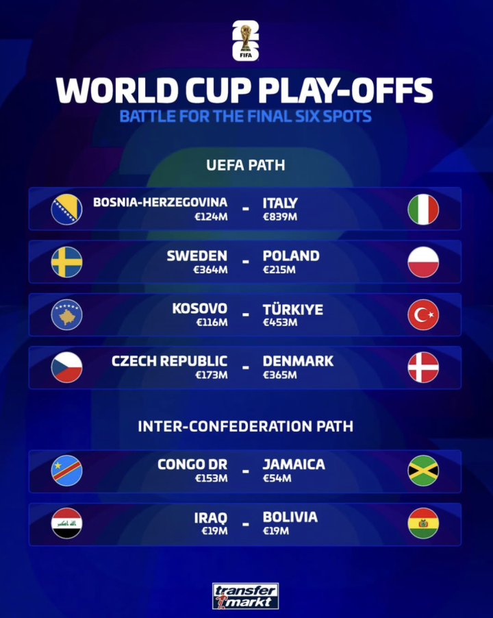 虎扑03月27日讯2026年寰球杯还有临了6个席位待定。12支球队共6组对阵将在4月1日打响,188金宝博争夺这临了6个限额: