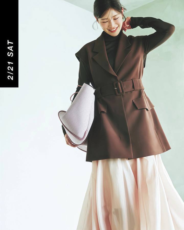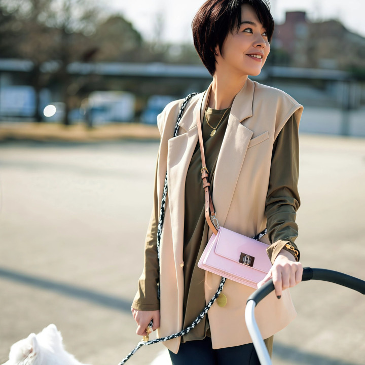 春天穿“粉色+棕色”,除了单品的搭配,加入少量配饰,也不错让你的穿搭变得更无缺,一条棕色腰带,能把粉色上衣和棕色裤子聚首起来,一个粉色包包,能呼应粉色上衣,让总计造型看起来更完整。