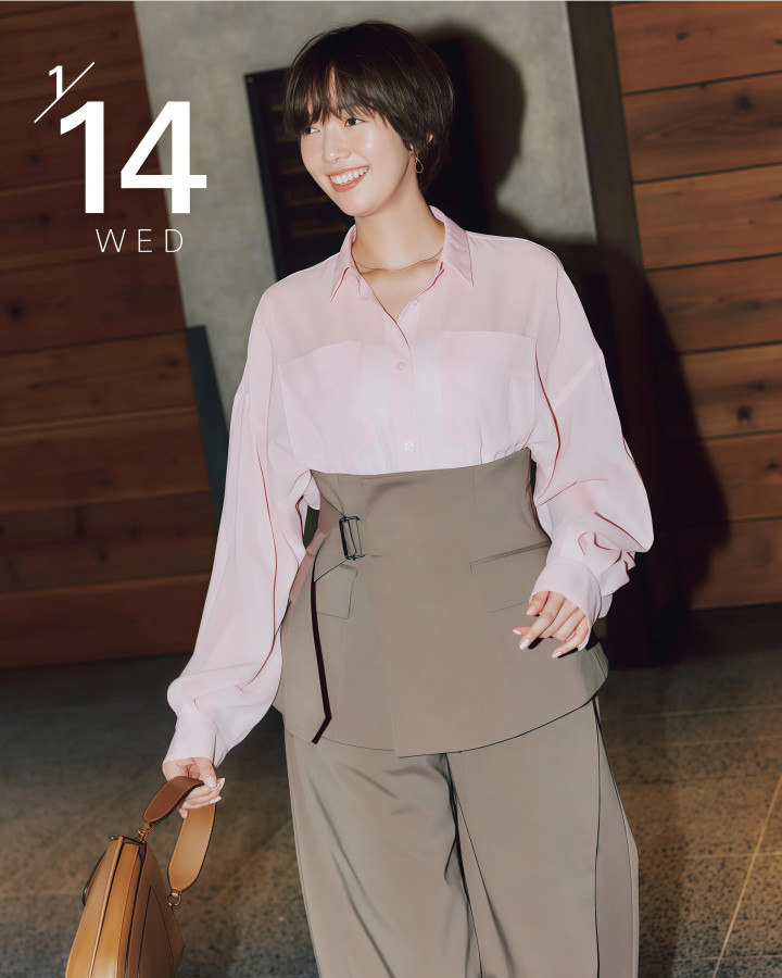 念念要把“粉色+棕色”,穿出利落的嗅觉,衬衫+西装裤的搭配就很稳当,甜妹又利落的粉色衬衫,配上硬朗的棕色西装裤,穿在身上既有气场又不失女东说念主味。