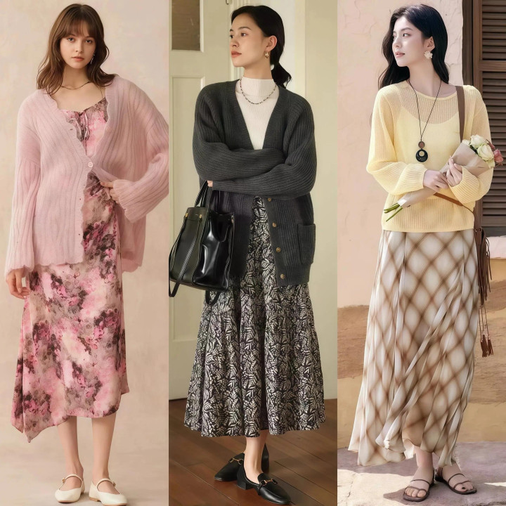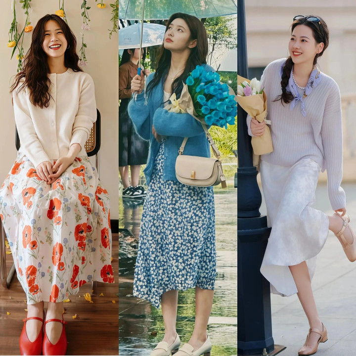 ★ 真挚开衫+碎花裙,用同色系打造高等感