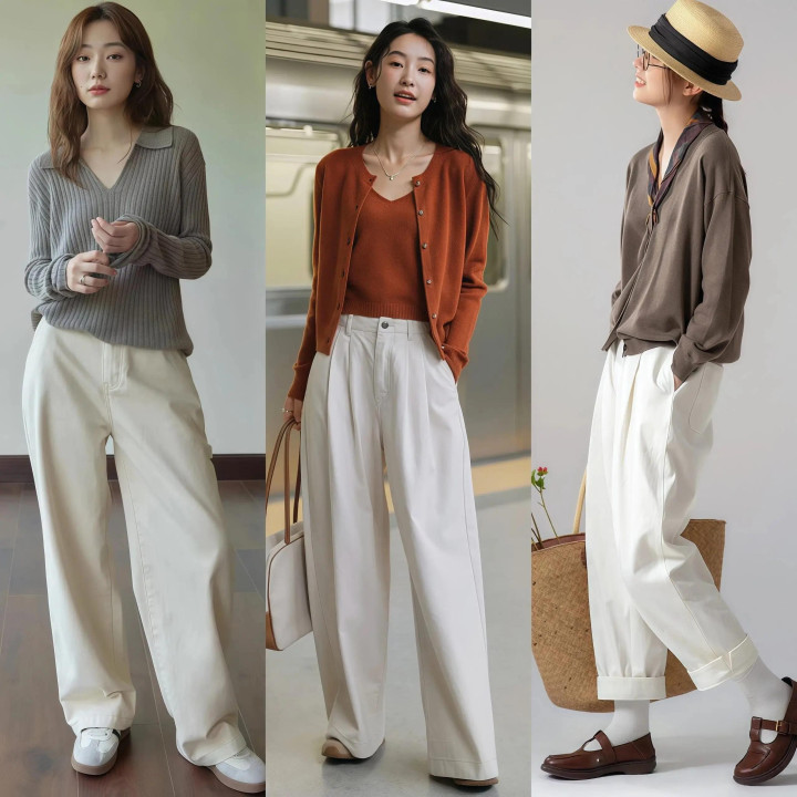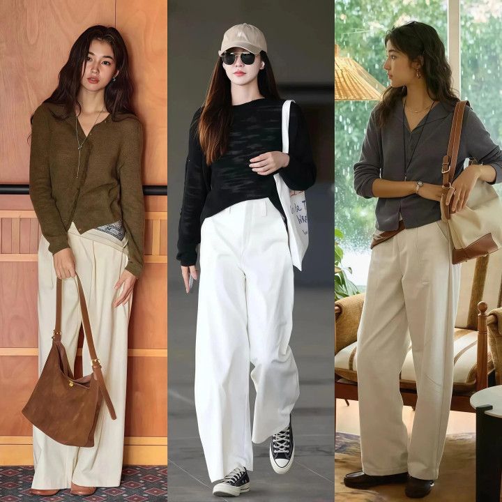 ★ 淡色真挚衫+白色阔腿裤,澄莹一扫数春天