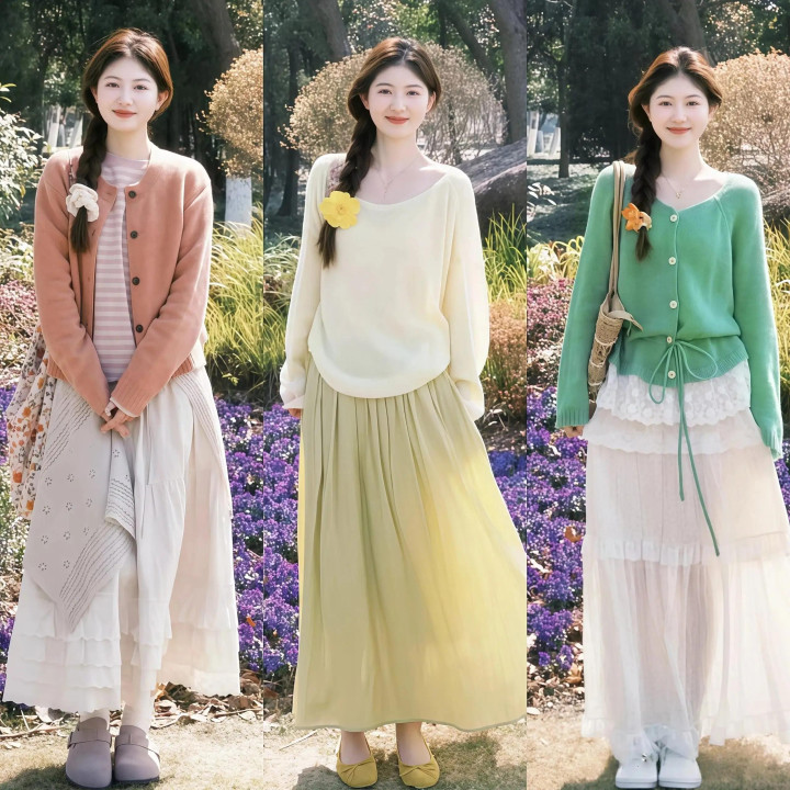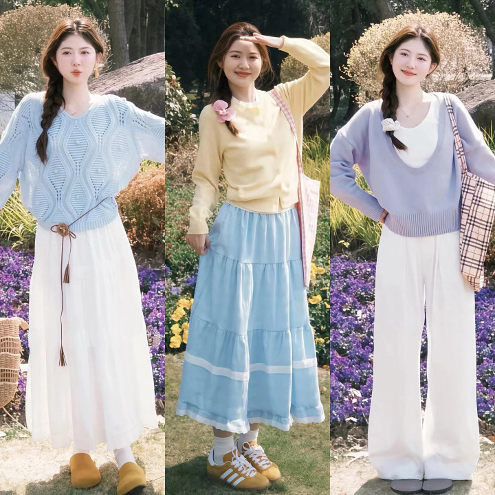 ★ 淡彩色真挚衫+小白裙,崭新青娥,减龄十岁