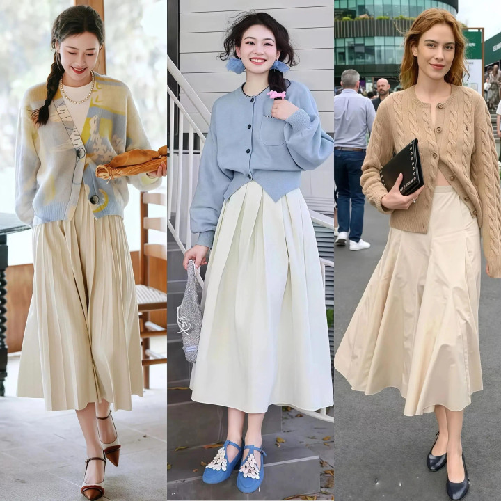 想减龄就穿这一组搭配组合,悉数让你年青十岁,淡彩色真挚衫配一条白色半裙,奶蓝、浅粉、淡紫王人不错,上头少许柔软的时势加上白裙干净底色,穿出来十分崭新,30岁穿也能穿出20出面的现象。