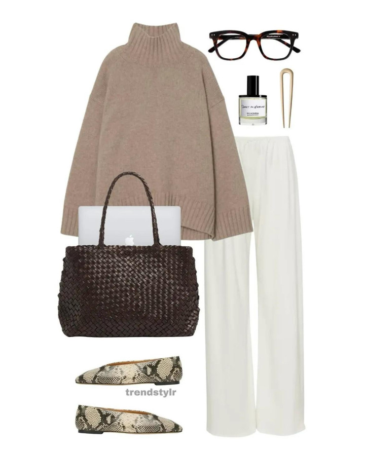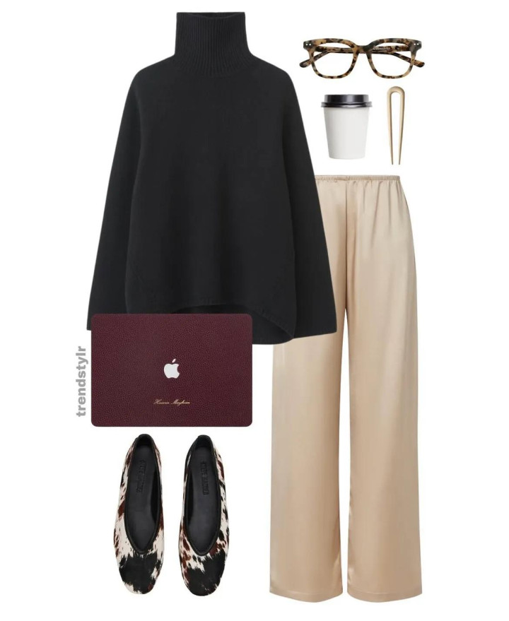 而换成深黑高领毛衣配淡奶茶咖的萧洒长裤,悠哉还显瘦的穿搭,就这么陪咱们渡过周末的下昼吧。